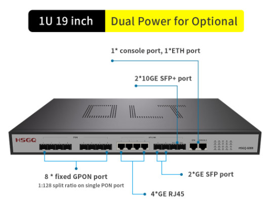 OEM ODM 8 Ports Gpon OLT 2 * 10GE SFP uplink Slots 4 * 10/100/1000M RJ45 uplink